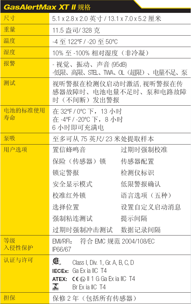 GasAlertMax XT II 的其他功能: