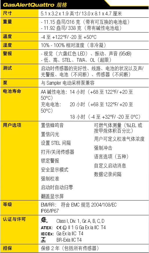 GasAlertQuattro 的其他特點: